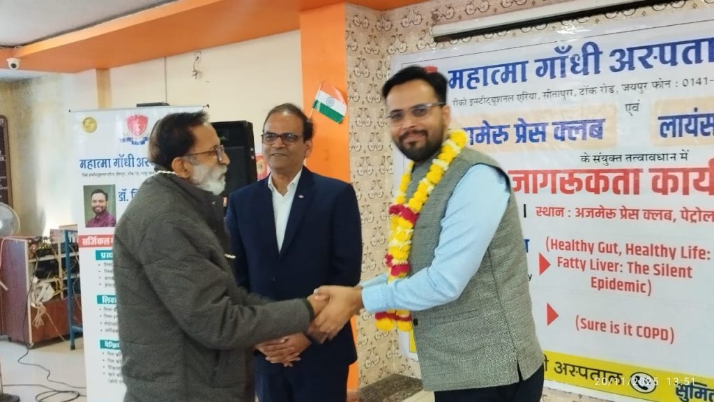 अजयमेरु प्रेस क्लब और लॉयन्स क्लब आस्था, अजमेर के संयुक्त तत्वावधान में शनिवार को स्वास्थ्य जागरूकता कार्यक्रम का आयोजन किया गया। कार्यक्रम में महात्मा गांधी अस्पताल जयपुर के रेस्पिरेटरी मेडिसिन विभागाध्यक्ष डॉ महेश मिश्रा ने फेफड़ों संबंधी बीमारियों पर विस्तृत जानकारी दी। उन्होंने कहा कि हमारे शरीर में केवल फेफड़े ही ऐसे अंग हैं जिनका पर्यावरण से सीधा संबंध है। यदि आसपास का वातावरण साफ-सुथरा और स्वास्थ्यवर्धक हो तो अनेक रेस्पिरेटरी समस्याएं स्वतः नियंत्रित हो जाती हैं। उन्होंने कहा कि जिसे आमतौर पर हार्ट अटैक समझा जाता है, वह कई बार लंग्स अटैक का परिणाम होता है, क्योंकि सांस रुकने से ऑक्सीजन लेवल कम होता है और हृदय पर दबाव पड़ता है।